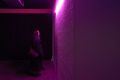 Technik 2175 weisse Noppen an Wand, LED Lampe pink